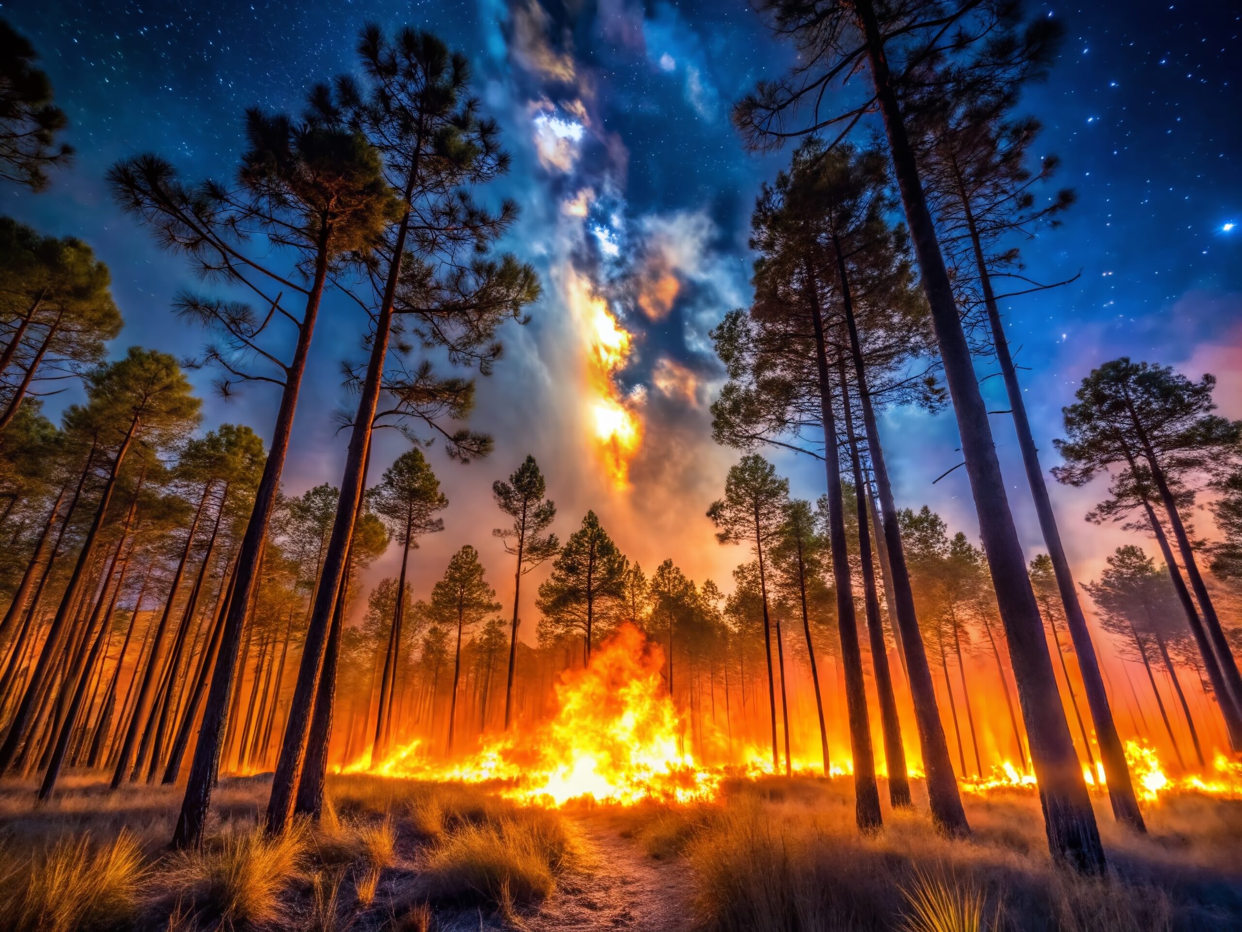 Controlled Burn Night Photography in Longleaf Pine Forest, Sandhills NC